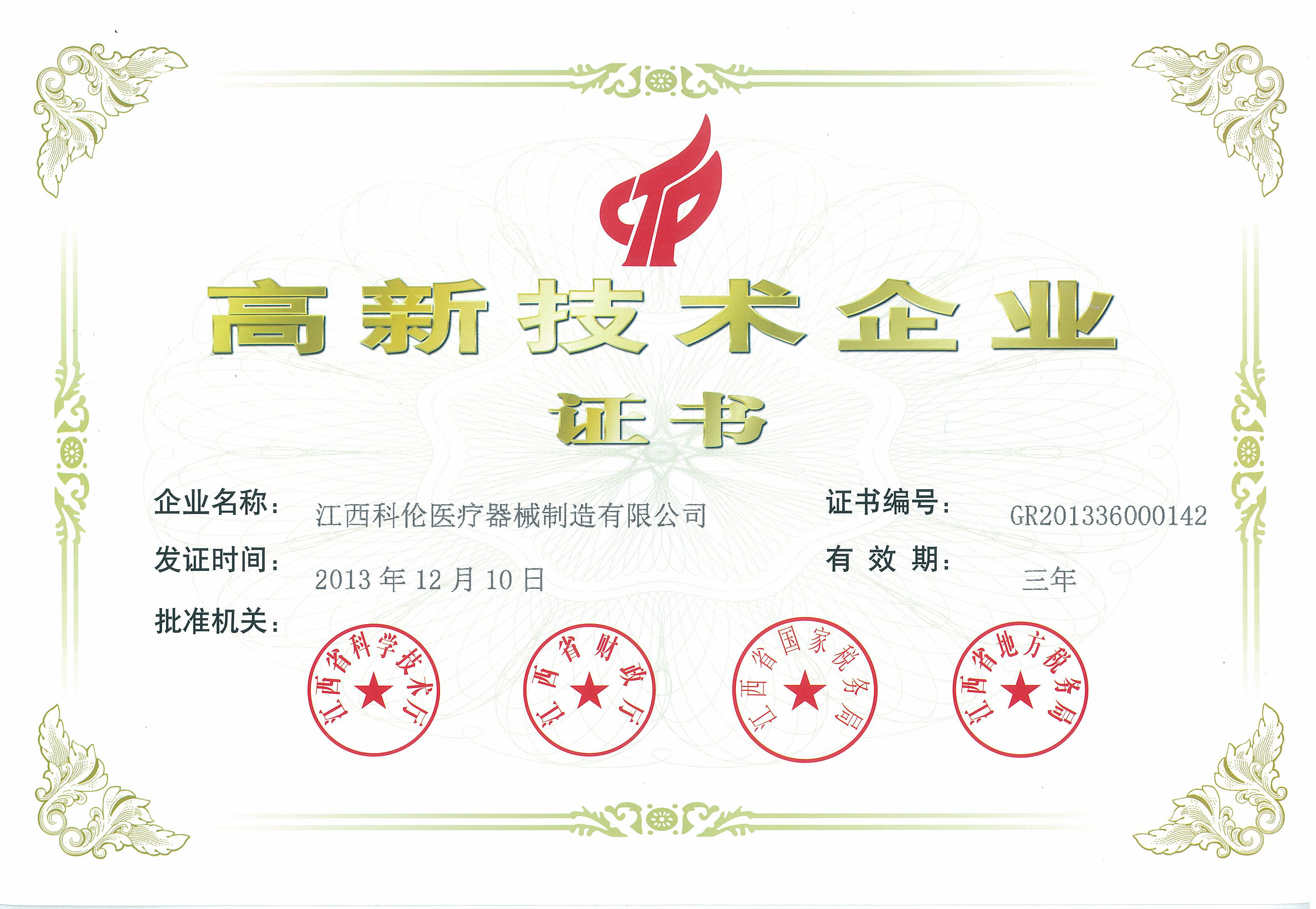 2013年12月认定为国家高新技术企业
